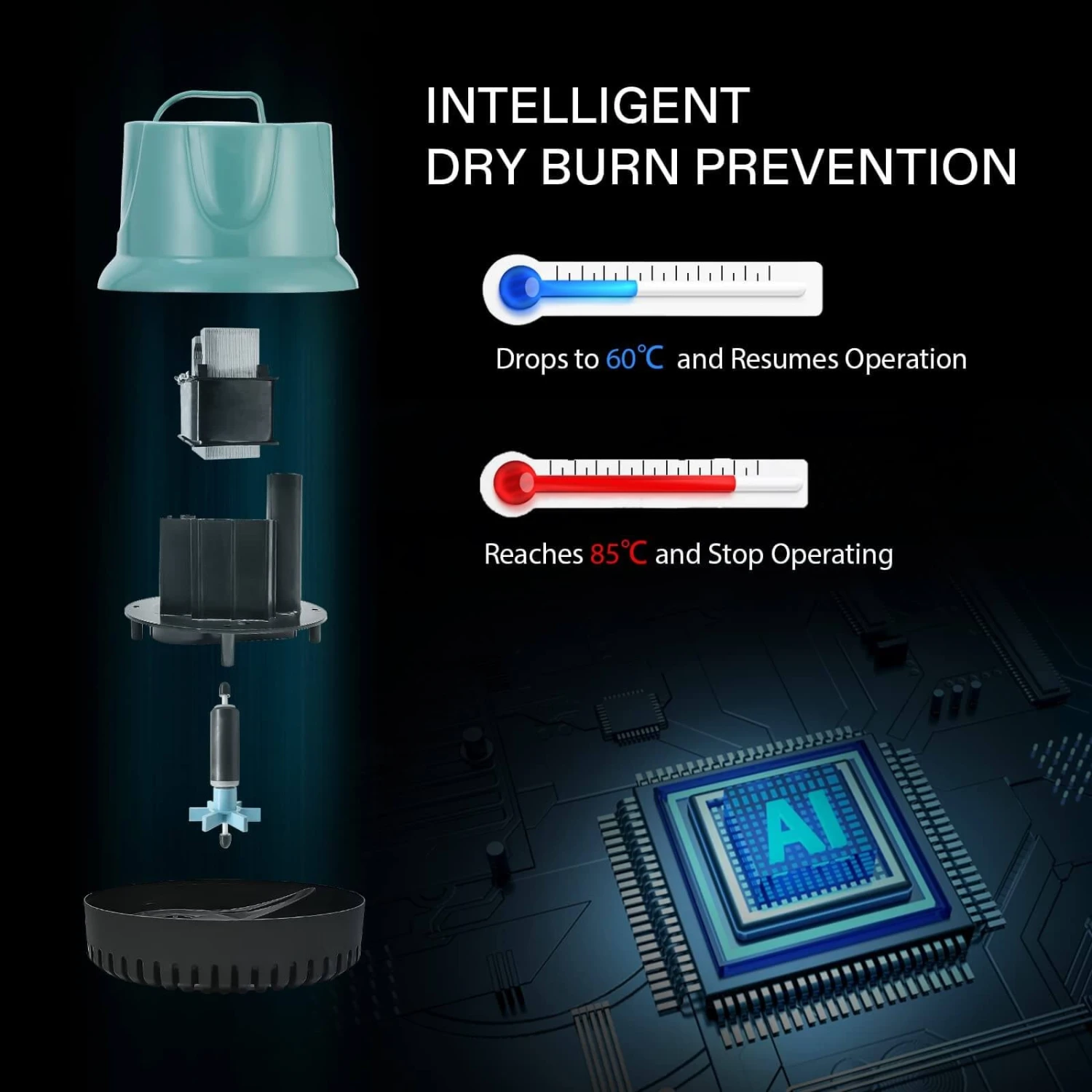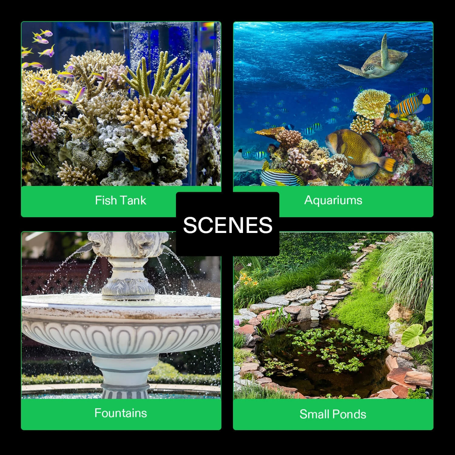 VIVOSUN 1150GPH 100W Submersible Pump for Fish Tank, Pond, Aquarium, Hydroponic Systems with 5ft Power Cord and 4 NozzlesProduct Details: 6.8” x 5.3” x 6.8”; The 5ft. long power cord offers convenient installation wherever you need; Max. flow rateBottom Inlet: The water inlet is on the bottom of the pump, which could drain as much water as it can, and pump the water 5mm higher than others; The 360⁰ omnidirectional filtering cleans out excrement and crud while keeping water circulating all aroundAnti-Drying Design: When the temperature reaches to 185 ℉(85℃), the built-in thermal protector chip will stop the pump from draining and pumping water; Pure copper wiring delivers more stable power for a longer service life and more energy savingsUltra-Quiet & Durable: Only making 28db sound, this pump is super quiet, so there is no trouble of getting disturbed while the pump is working; The pump’s ceramic shaft core uses a high-strength wear-resistant rotor that is both acid resistant and corrosion resistantWild Application: Equipped with detachable water outlet, suitable for various sizes of water pipes, this submersible pump can be applied to many different occasions, such as fish tank, pond, aquarium, hydroponic systems and etc