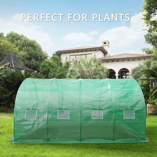 13x10x7FT Large Walk-in Green House Tunnel Hot House for Outdoor Plant GardeningRoll-up Front Entrance and Window: Zipped roll-up entrances provide easy access to the greenhouse and a bigger operating space; 8 side windows bring better air circulation to the greenhouse, even if in hot weather, your lovely plants can breathe fresh airHeavy-duty Galvanized Steel Frame: Supported by galvanized finish heavy-duty steel frame, our VIVOSUN tunnel greenhouse is more durable and anti-rust than those whose frames are powder-coatedReinforced PE Cover: The durable, waterproof and transparent cover can protect your plants from UV rays and give them the optimal light environment; Your plants will be nourished very well with our VIVOSUN strong walk-in greenhouseExtra-long Cover Design: Extra long cover design provide a possibility to be buried in the soil, which reinforces the stability and airtight of our greenhouse, offering a better environment for the growth of tropical plantsDouble-Stranded Edge Banding: Our greenhouse is double-stranded edge banding, making the cover tougher and more durable; You can dispense with concerns about the bad weather because of our high-quality greenhouses