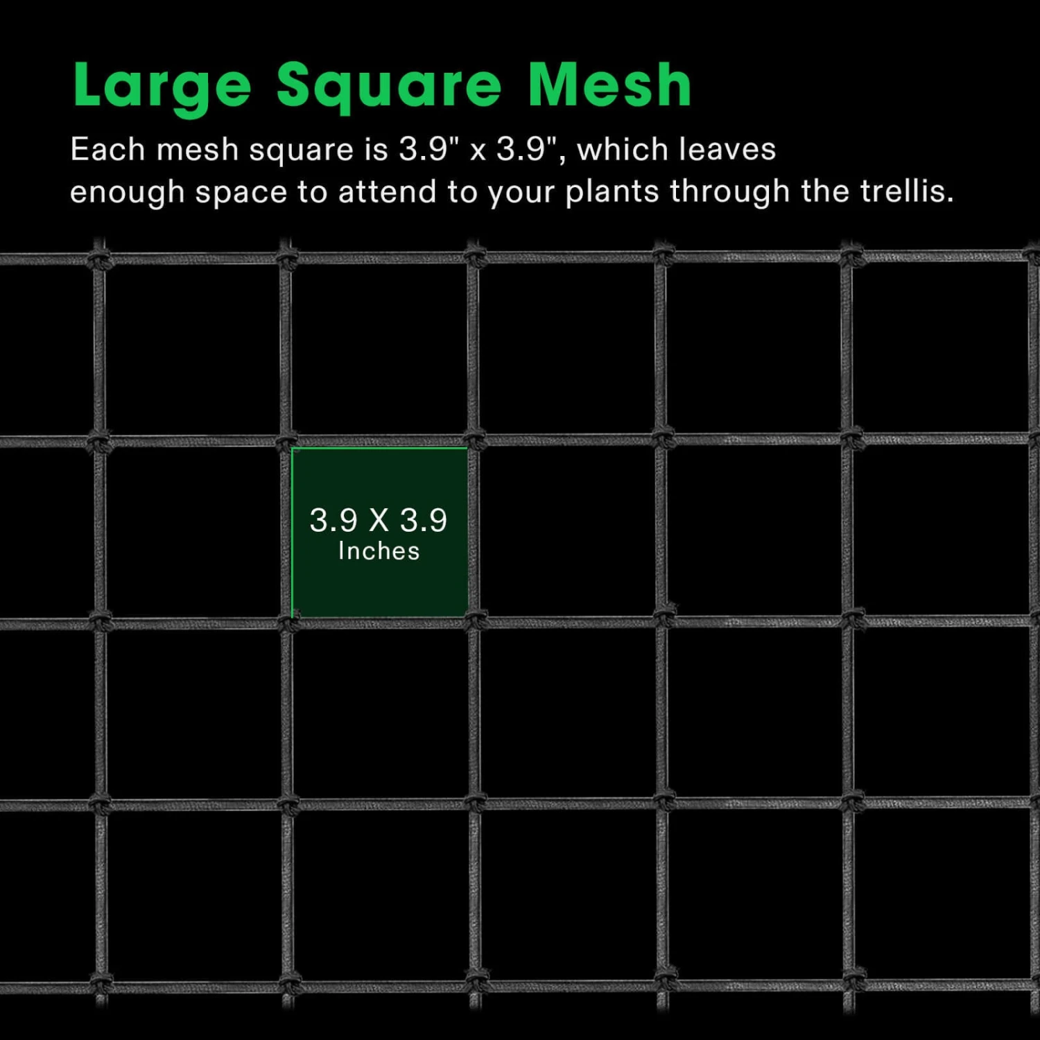 for Climbing Plants, Vegetables, Fruits, and Flowers, 1-PackReusable and Versatile: Measuring 3mm in diameter, VIVOSUN uses ultra-durable elastic thread in the elastic fabric cover and 4 rustproof “S” hooks measuring 22mm in width; You can easily fold it up and store it away after useEasy to Install and Adjust: The Trellis Netting comes in a size of 5 x 5ft., and you can easily cut it to the size you desire; Simply wrap and tie the netting around any stable structure or support—there’s no need to worry about it unravelingSave Space: You can direct the growth of your plants and maximize your space by weaving the netting around poles or other structures; When you pull the netting until it’s taut, the sturdy trellis will carry the weight of your plantLarge Square Mesh: Each mesh square is 3.9″ x 3.9″, which leaves enough space to prune plants and pick plants through the trellis; If you cut parts of the netting to fit your garden, you can save the leftover part for another plantStrong Support: The durable VIVOSUN Trellis Netting can support the weight of flowers, fruits, and vegetables such as cucumbers, blackberry, peas, cantaloupes, tomatoes, and other vining plants