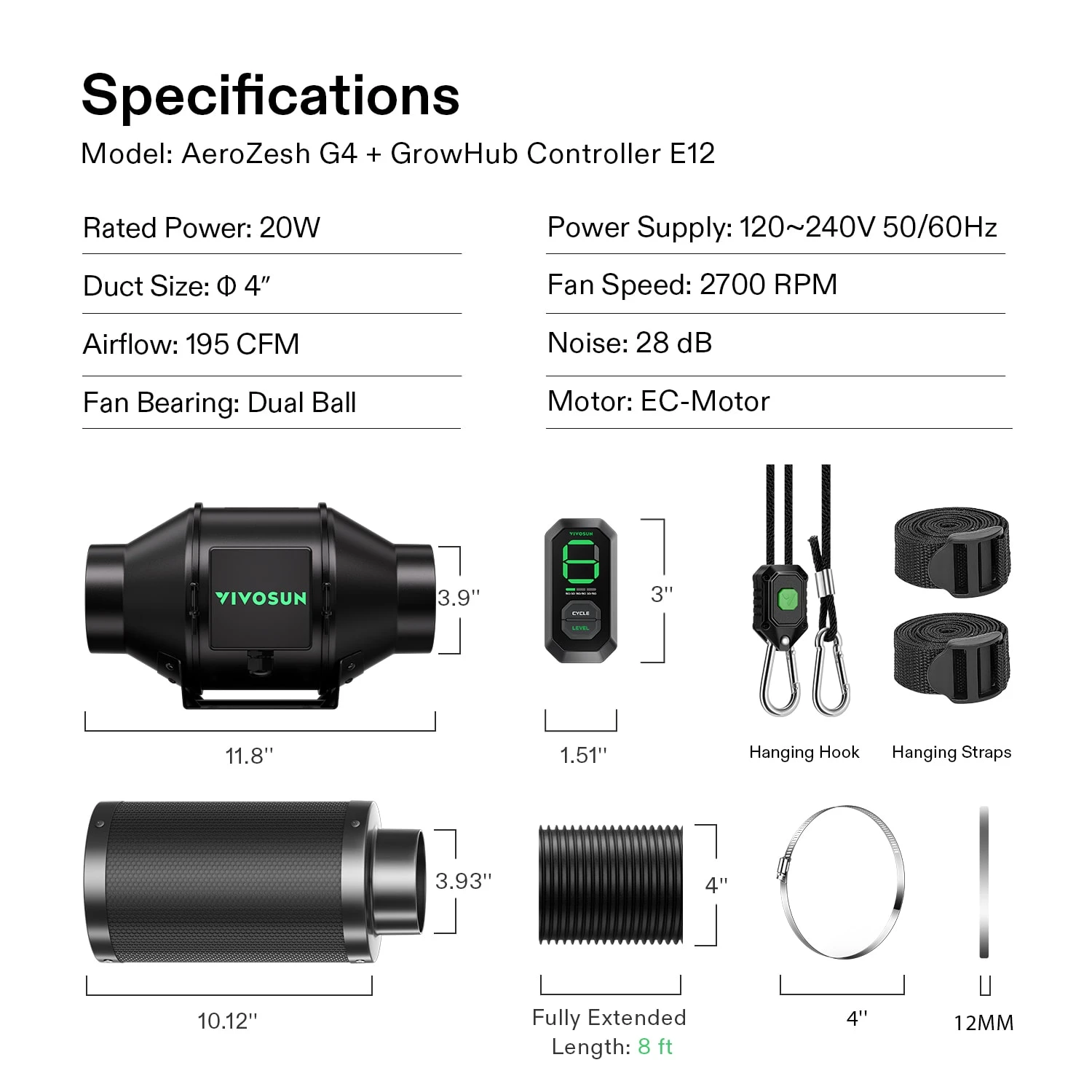AeroZesh G8 Inline Duct Fan Combo, Quiet 8″ 725 CFM Ventilation Exhaust Fan w/EC Motor and GrowHub E42A Temperature Humidity WiFi-Controller for Heating Cooling Booster, Grow Tents, HydroponicsUnify Your Equipment: You can operate them individually or unify all your smart devices through the GrowHub E42A platform to simplify the complexities of gardening to a scientifically manageable level and thus better stabilize your growth environment.Energy-Saving & Low-Noise Fan: This Fan is controlled by PWM more energy-efficient; The mixed-flow design allows the fans deliver air across longer distances; The fan ventilates quietly at just 51 dB.Environmental Monitoring: w/ a built-in temp and humidity gauge and one probe, the GrowHub Controller E42A monitors changes in both the internal and external environment and VPD, and you can view this data and program through the App.Fully Automated: Program your equipment to automatically take you through each stage of growth – program light intensity, light spectrum, on/off periods, fan speed, and airflow volume, make changes to better suit your plants at any time.App Controllable: The GrowHub Controller is WiFi-enabled so you can control your equipment from anywhere, anytime via the app; The App expands the controller’s capabilities through Grow Recipes and other extremely powerful settings.