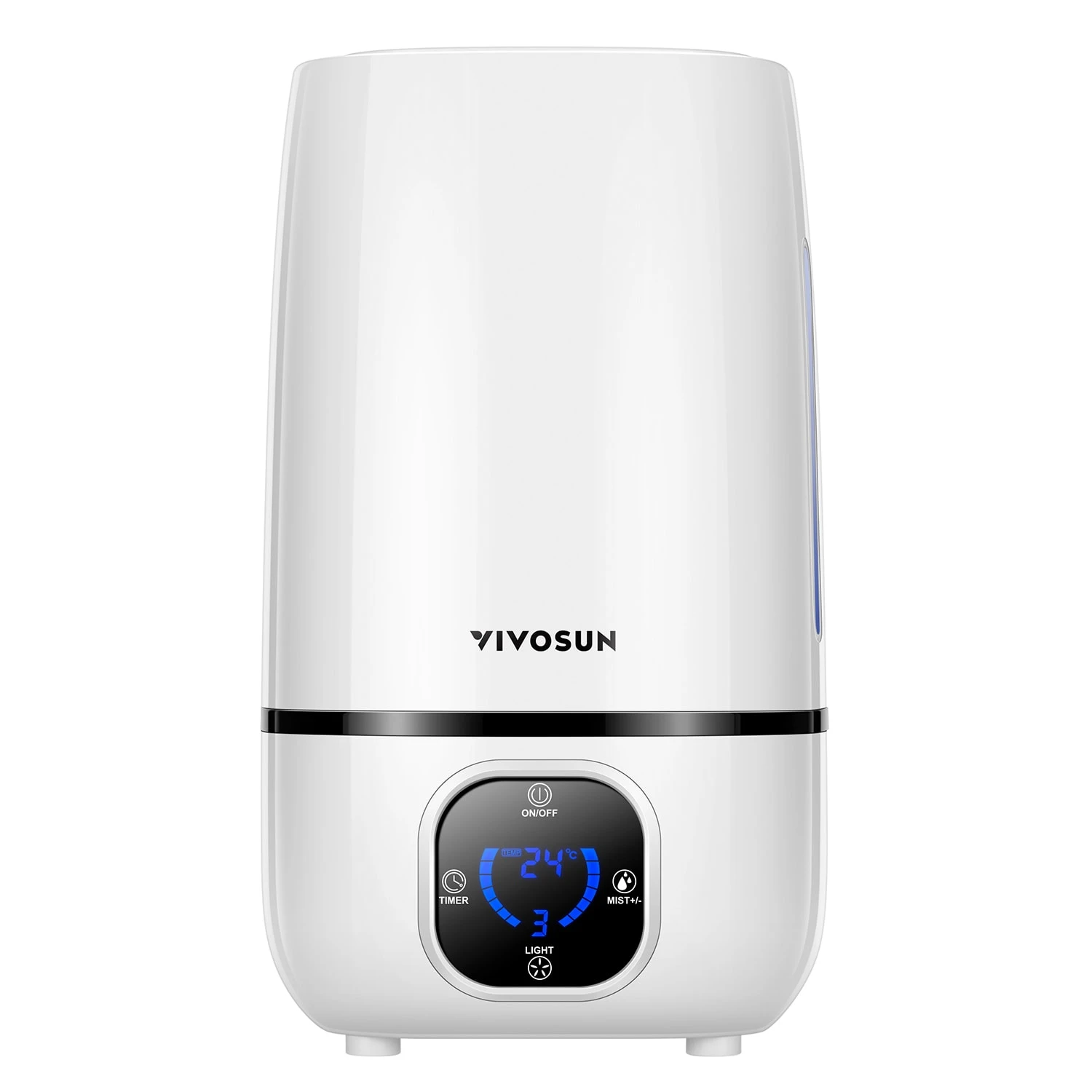 VIVOSUN Air Humidifier 4L Cool Mist Humidifier, Indoor Ultrasonic Humidifier with Essential Oil Box & Remote Control for Bedroom, Plant, Baby, Dry Skin4L Large Capacity: The large 4L water tank makes the humidifier suitable for rooms up to 183 square feet; Comes with 3 adjustable (high/medium/low) mist levels and features a sensitive touch screen and a remote controlAir Ionizer/Built-in Filter/Diffuser: The air ionizer and built-in filter work together to bring you fresher air by increasing the number of negative oxygen ions in the air; Essential oil diffuser circulates aromatic oils into the mistTimer Function & Auto Shutoff: Equipped with timer function with four optionsUltra-quiet + Sleep Mode: VIVOSUN humidifier runs so quietly that it’s almost silent (≤38 dB) – never disturbing your sleep; Set it to sleep mode to turn off all lights and soundsEnjoy A Healthy Life: VIVOSUN humidifier helps you stay healthy by maintaining constant humidity; Say goodbye to stuffy rooms and dry skin; Gives total protection to the elderly, babies, pets and plants in your home