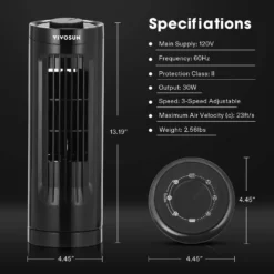 13” Bladeless Table Tower Fan, With 3 Speeds And 70°Oscillation, Portable And Compact, Quiet Cooling Fan For Home And Office, Black