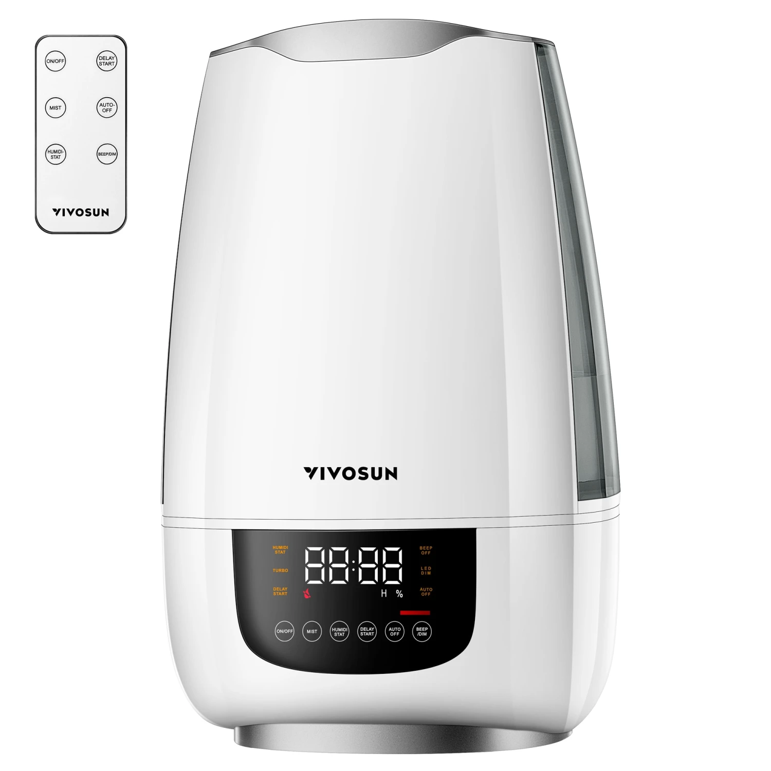 VIVOSUN Cool Mist Humidifier, 6L Quiet Ultrasonic Humidifier for Bedroom (Customized Humidity, Remote Control, Sleep Mode & Auto Shut Off, 360° Nozzle)Auto Shut-off: Shuts off automatically when the water tank is drained or removed; Dry burn protection makes the humidifier safer and longer-lastingAir Ionization / Built-in Filter / Diffuser: Our ultrasonic humidifier is much more than your average, run-of-the-mill, regular humidifier —it’s also an essential oil diffuser, air ionizer, and built-in filter; The air ionizer and built-in filter work together to bring you cleaner, fresher air by increasing the number of negative oxygen ions in the air; The essential oil diffuser circulates fragrant oils into the mist, giving you the relaxing touch of wonderful aromasTimer Function & Auto Shutoff: Equipped with timer function with four optionsUltra-quiet + Sleep Mode: Our mini humidifier runs so quietly it’s almost silent (≤38dB)—you’ll be sure to get a good night of rest while it’s running; Set it on the sleep mode to turn off all lights and soundsEnjoy A Healthy Life: Regardless of the season, the VIVOSUN Humidifier will help you stay healthy by keeping a constant humidity level; Say goodbye to stuffy rooms and dry skin; It’s suitable for giving full protection to the elderly, babies, pets, and plants in your home