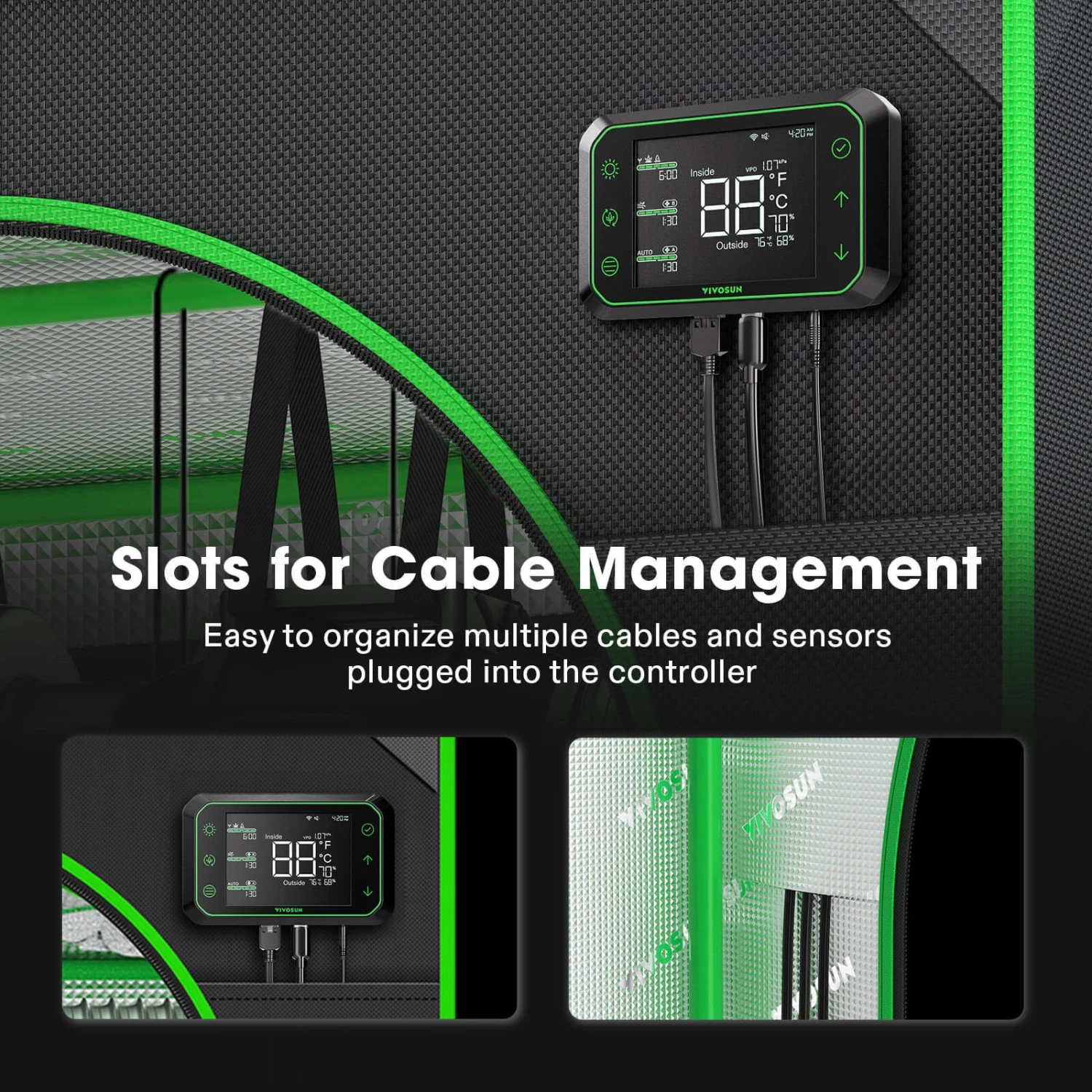VIVOSUN 2-in-1 Grow Tent is a good choice for growers. This tent has separate areas so that you can control growing parameters individually. You can assemble the tent according to your indoor planting arrangement. Whether you’re starting a new growing operation or have mature plants, this grow tent will be the perfect environment for them.Reliable, Stable Growing Environment: Growing conditions outdoors are unstable and unpredictable; In VIVOSUN 2-in-1 9×4 Grow Tent, however, you have control of light, temperature, humidity, and soil conditions so you can tailor everything to your plant’s specific needs, keep your garden safe from noisy neighbors, pesky pets, and cankerous critters, ensuring maximum results.Multi-Chamber Grow Tent: Features 2 small interior chambers and one large tent area, so it allows individual room for propagation, vegetation, and flowering stages and can keep your plants perpetually ready for harvest, cutting out the need for buying another fruiting or propagation tent for your plants.Keeps All Light Inside: Made of high-quality 600D Oxford canvas that is lined with reinforced PE layer and 100%-reflective Mylar, and smooth zippers upgraded with the black inner lining, this grow tent effectively blocks all light from leaking and boosts the output efficiency of your setup; No need for additional flaps or tape, just zip up to create a safe lightproof environment.Considerate Customizable Design: The plant grow tent offers plenty of openings for setting duct fans, lamps, electrical cords, etc.; The inner tool organizer is handy to put all your gardening tools; It is also equipped with removable floor trays that are convenient to be cleaned and conserved; Comes with hanging straps that are able to help to fix the equipment as you need.User-Friendly Assembly Instruction: With the guidance of the detailed manual, you can assemble the tent in minutes even if you are a beginner; The corner connectors can uphold the tent frame stably without any tools; Note: if the zipper got stuck, please tenderly pick out any fabric caught in the tines, instead of firmly pulling the zipper. VIVOSUN 2-in-1 grow tent has 3 different compartments, separates areas that you could individually control parameters. The separator between the shelving and the main grow chamber is a dis-mountable Mylar sheet.