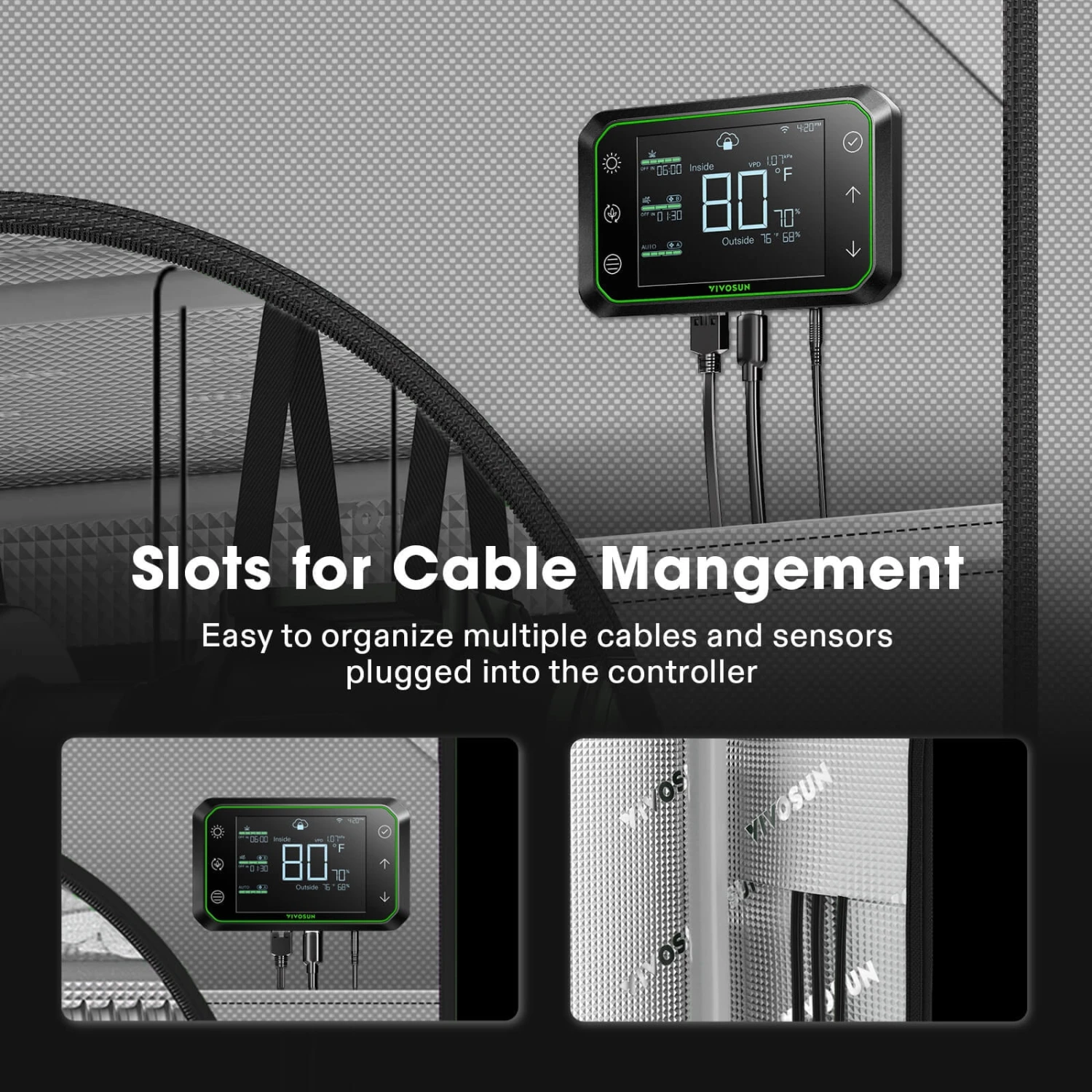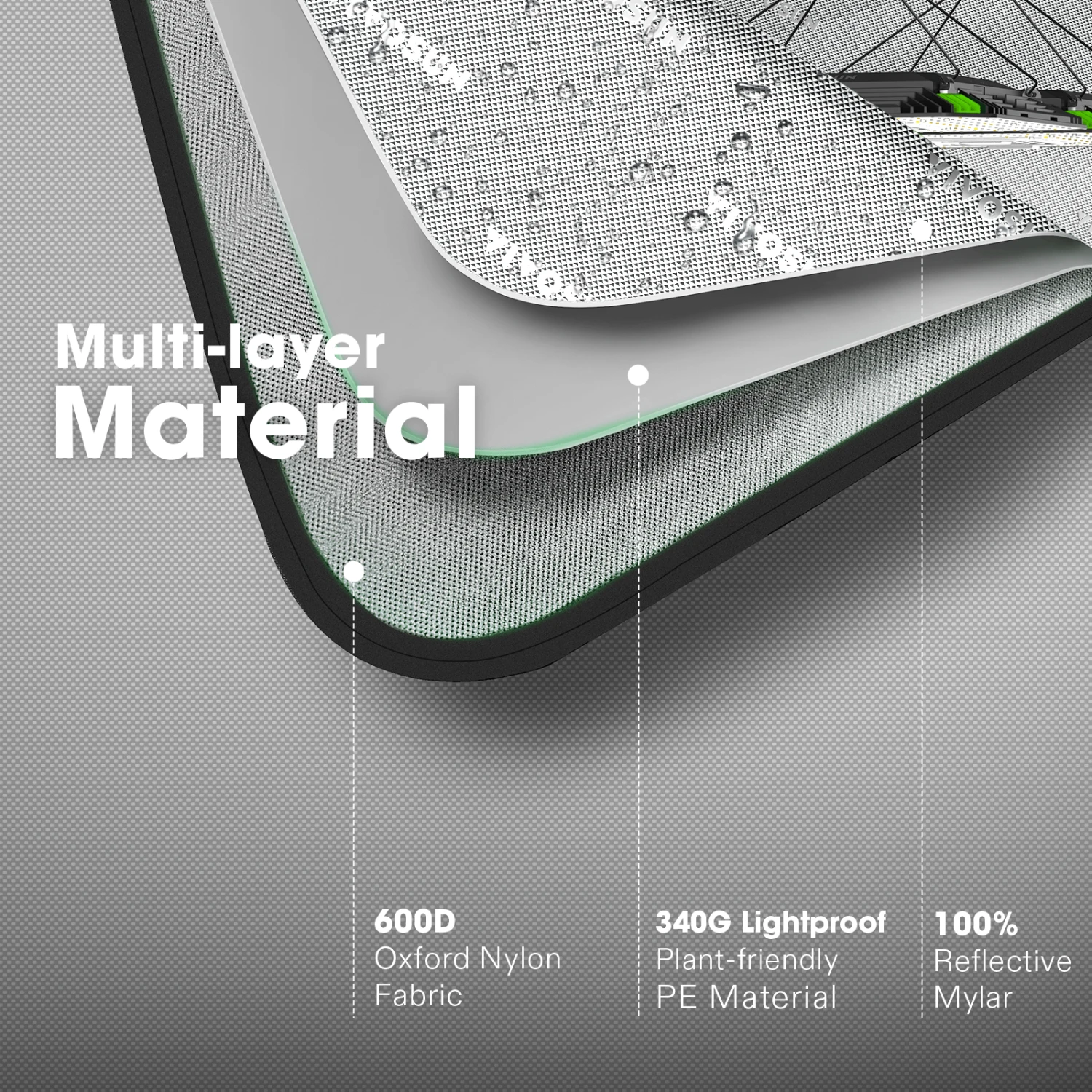 Featuring a controller mounting strip, VIVOSUN Upgraded Gray Mylar Reflective Grow Tent is a up-to-date solution to a grower’s needs. Whether you’re starting a new growing operation or have mature plants, this grow tent will be the perfect environment for them. The tent is suitable for different places in your house, such as the domestic garage, balcony, laundry room, closet, and so on; Various sizes of grow tents are provided to meet your daily demands.100% High Reflectivity: High-density 600D Oxford fabric prevents light leakage and keeps your growing area well-insulated; The interior walls, ceiling, and floors are all lined with 100% diamond reflective mylar for multidimensional lightingReliable Ventilation: The grow tent is outfitted with ventilation ports to fit both duct fans and carbon filters for optimal airflow and ventilation; Comes with double-cinching ducting ports that effectively seal the tent while allowing air to travel freely in and out of the grow roomsController Mounting Strip: This tent features a controller mounting strip for easy hanging of a controller (No ABS Mounting Plate Included)Sturdy Frame & Strong Zipper: The thickened 19mm poles and durable metal frame enhance the overall load-bearing capacity, up to 100 lbs.; The strong zippers and tightly reinforced seals prevent light seepage and maximize the reflectivity of usable lightObservation Window + Removable Floor Tray: Our easy-access observation window makes it easy to observe your plants; The detachable floor tray captures any spilled soil and keeps the tent clean