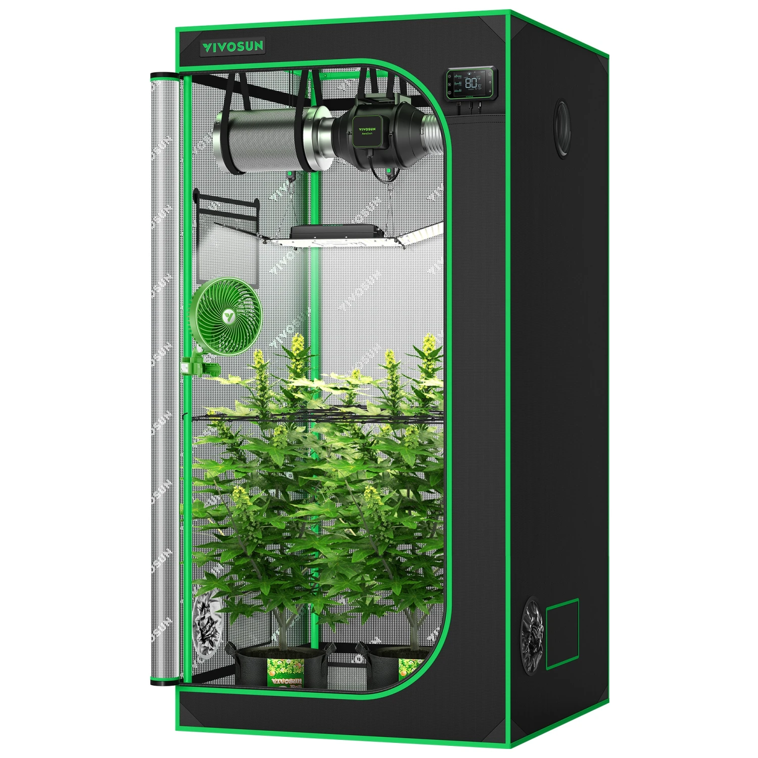 Kit includes: 5 x 5 ft. Grow Tent, AeroLight Wing AW200SE x3, AeroZesh S6 Inline Fan Combo, GrowHub E42A Controller, AeroWave E6 Clip-on Fan and an Accessory Bag.Grow Tent: Our highly reflective Mylar 5×5-foot grow tent is capable of housing 6-10 plants, it is the perfect size to start your growing journey.AeroLight: Our energy efficient AeroLight Wing LED Grow Light is adequate for the 5×5 grow tent and you can adjust the light to the optimized spectral ranges for all stages of a plant’s life cycle. The built-in fan in the light will help circulating air from the top inside the tent.AeroZesh: Our powerful and quiet 6-inch AeroZesh ventilation system provides fresh, cool air for your plants while filtering odors from the grow space.GrowHub: Our GrowHub Controller simplifies growing. You can remotely control devices from anywhere, all-in-one platform for controlling, monitoring, designed for growers of all experience levels.AeroWave: Our auto-oscillation Clip-on Fan offers a strong airflow propelled by EC motor. Improved growing conditions are provided by the innovative natural breeze mode.Accessories: Our accessory pack has everything you need for growing, including enough fabric pots, trellis netting that fits grow tent size, 328-foot plant ties, and VIVOSUN trimming shears.
