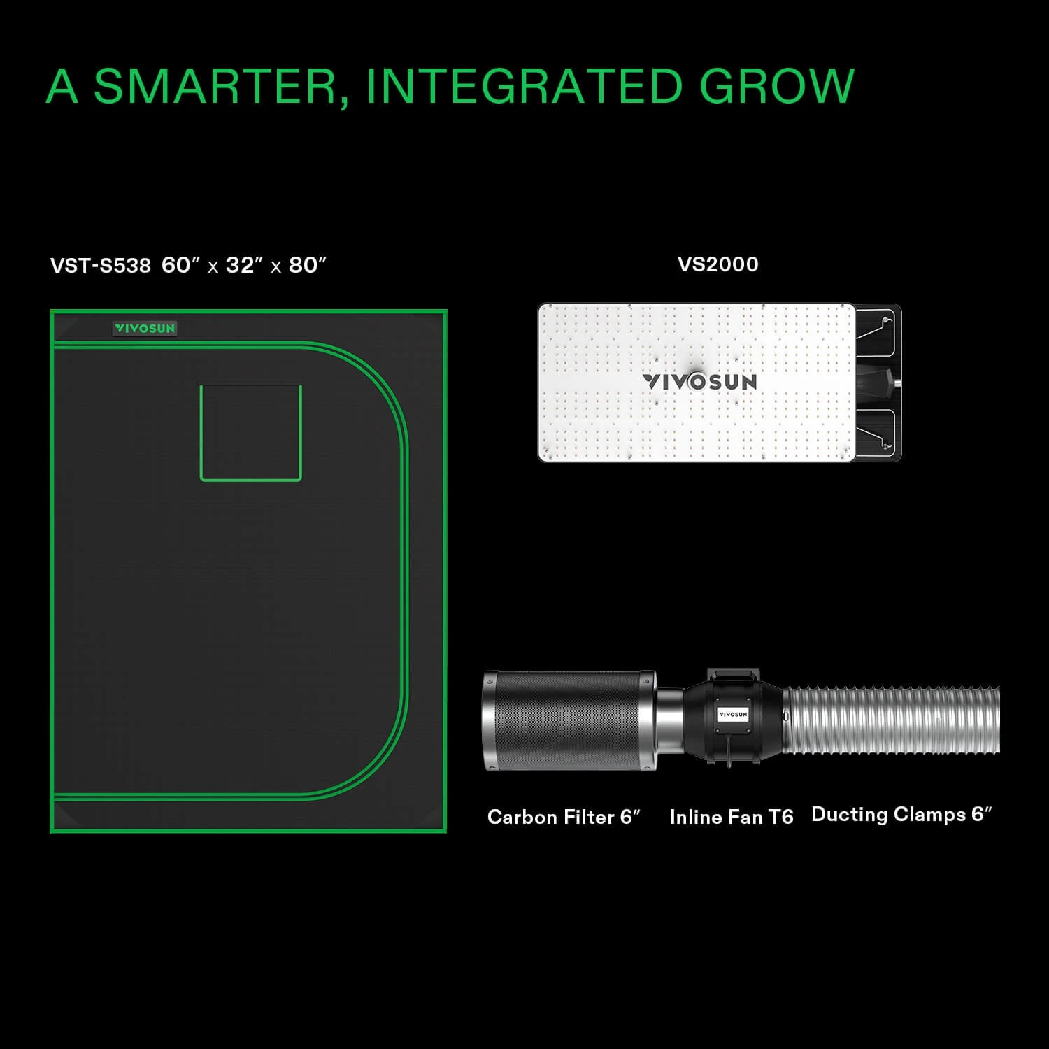 Kit includes: 5 x 2 ft. Standard Grow Tent, 200W VS2000 LED Grow Light, and 6 Inch Inline Fan Combo.Overview: Our Basic Grow Tent Kit includes the essential components for you to start growing! It is easy to set up and is an affordable option for new growers.Grow Tent: Our highly reflective Mylar 5×2-foot grow tent is capable of housing 2-4 plants, it is the perfect size to start your growing journey.Grow Light: Our energy efficient VS2000 LED Grow Light is ideal for the 5×2 grow tent and is capable of providing optimized spectral ranges for all stages of a plant’s life cycle.Ventilation: Our powerful and quiet 6-inch ventilation system provides fresh, cool air for your plants while filtering odors from the grow space.Warranty: Our five-year warranty on the grow light and one-year warranty on the rest of the kit show great confidence in our products.
