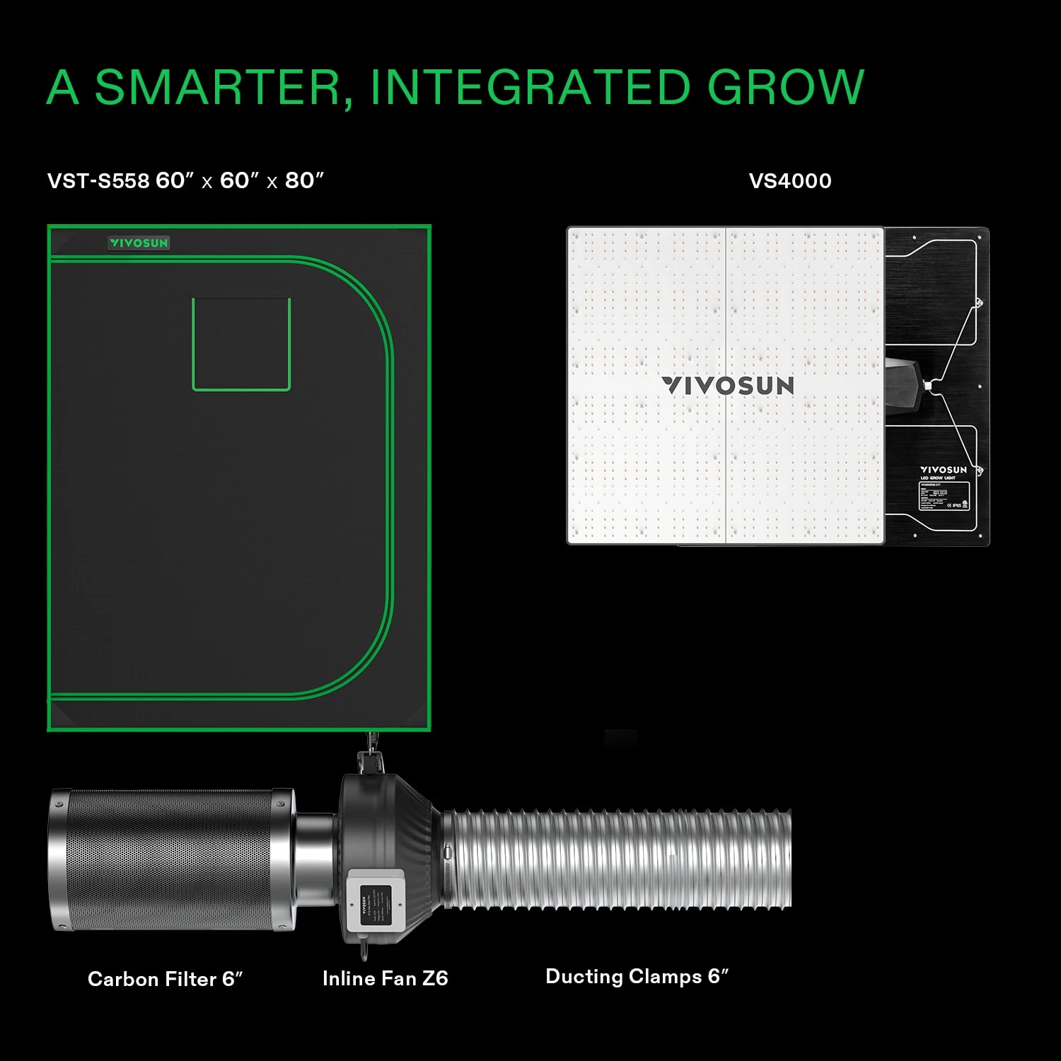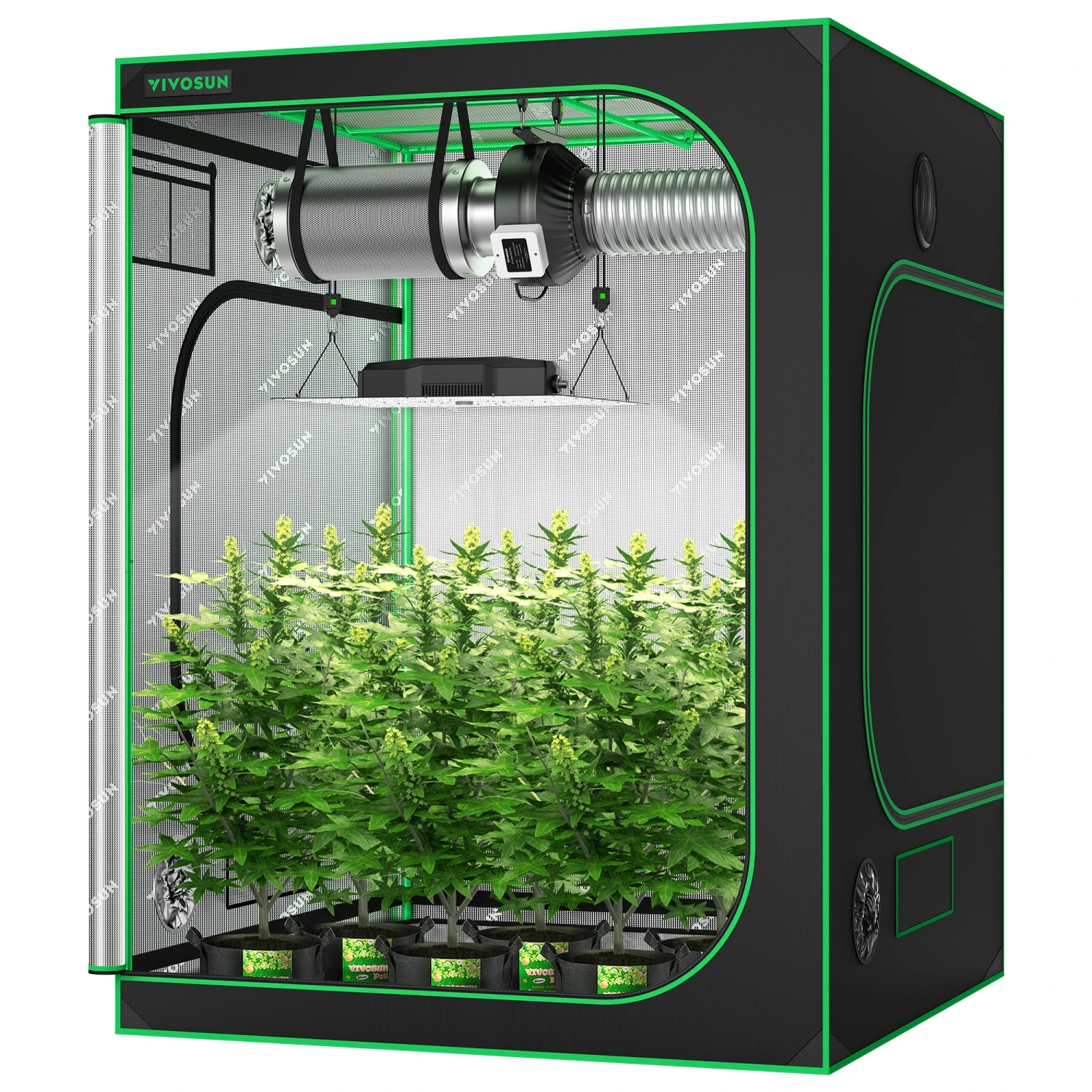 Kit includes: 1x VIVOSUN 5 x 5 Grow Tent, 1x VS4000 LED Grow Light, 1x Protection Eyeglasses, 1x 6-Inch 440CFM Inline Duct Fan, 1x 6-Inch Carbon Filter, 1x 6-Inch 16 ft Ducting, 2x 6-Inch ClampsOverview: Our Basic Grow Tent Kit with reinforced grow tent includes the essential components for you to start growing! It is easy to set up and is an affordable option for new growers.Grow Tent: Our extra reinforced and highly reflective Mylar 5×5-foot grow tent is capable of housing 6-10 plants, it is the perfect size to support your high yield goal.Grow Light: Our energy efficient VS4000 LED Grow Light is adequate for the 5×5 grow tent and is capable of providing optimized spectral ranges for all stages of a plant’s life cycle.Ventilation: Our powerful and quiet 6-inch ventilation system provides fresh, cool air for your plants while filtering odors from the grow space.Warranty: Our five-year warranty on the grow light and one-year warranty on the rest of the kit show great confidence in our products.